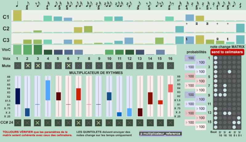 A Graphic interface of Agône, where user refine rhythms allowed by the cell makers engines.